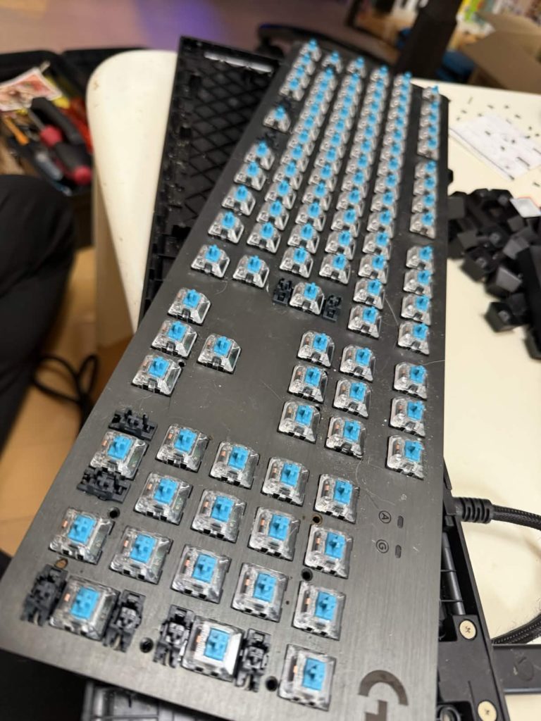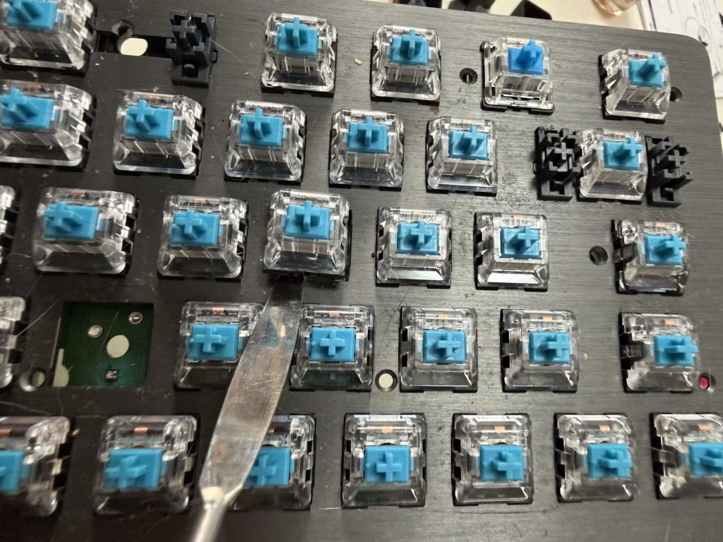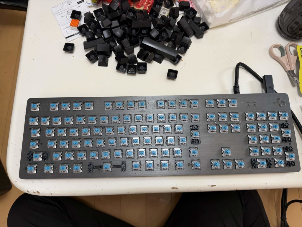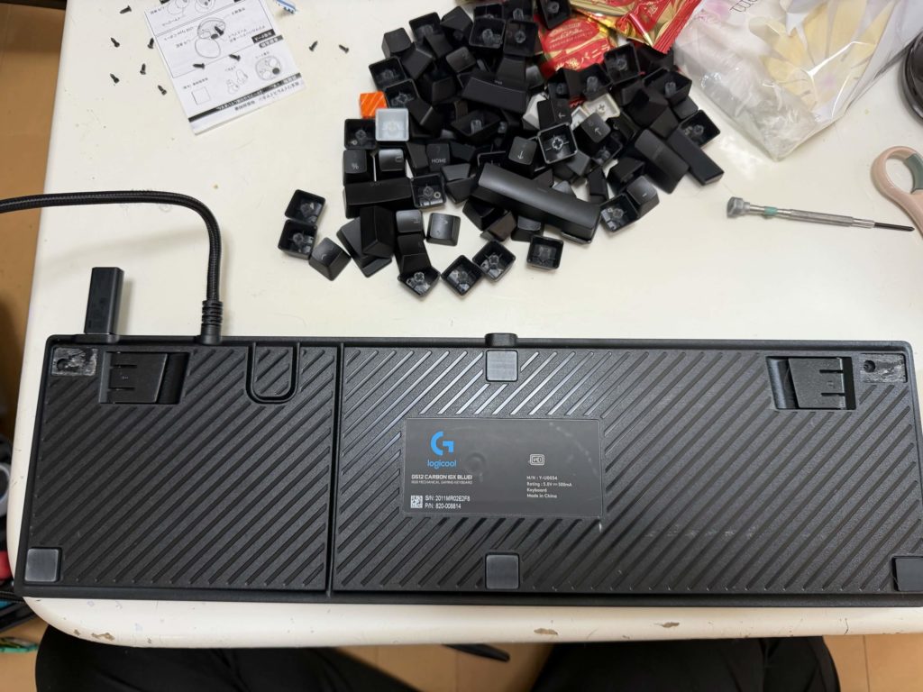 ここで私はキースイッチ取り外し用の工具を買っておけばよかったと結構後悔している。なぜならそれなしでキースイッチを取り除くのが結構大変だからである。