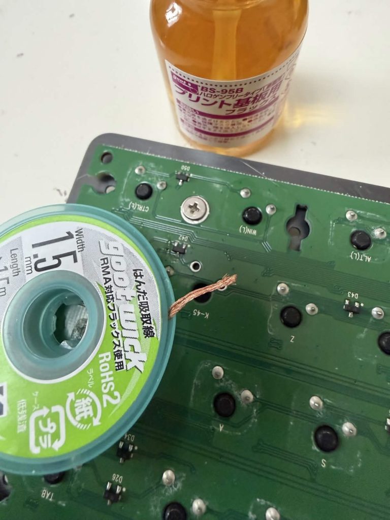追いはんだをのせた後に吸収線をちょいとひねって引っ掛けて、その上からはんだを当てると結構綺麗に取れることに気づいた。それでも回数は重ねる必要はあるが。