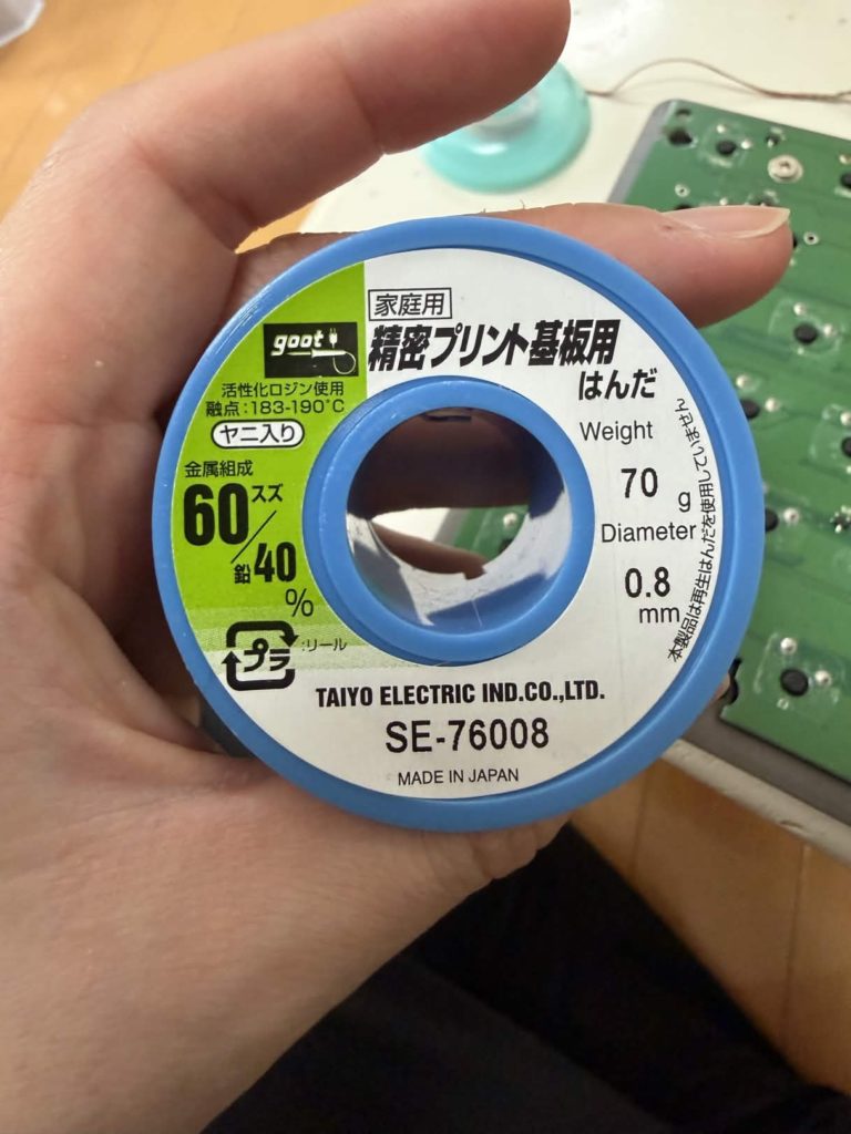 買い替えをめっちゃ考えたけど、憧れのリアルフォースは高すぎるし、TikTokではやってるHoney keyboardはデザインがドストライクやけどテンキーがないし。。。となり、まあ極限まで今のキーボードを使ってみるか、ついでにはんだごての練習にもなるか(?)と思いたち、キースイッチを交換することに。